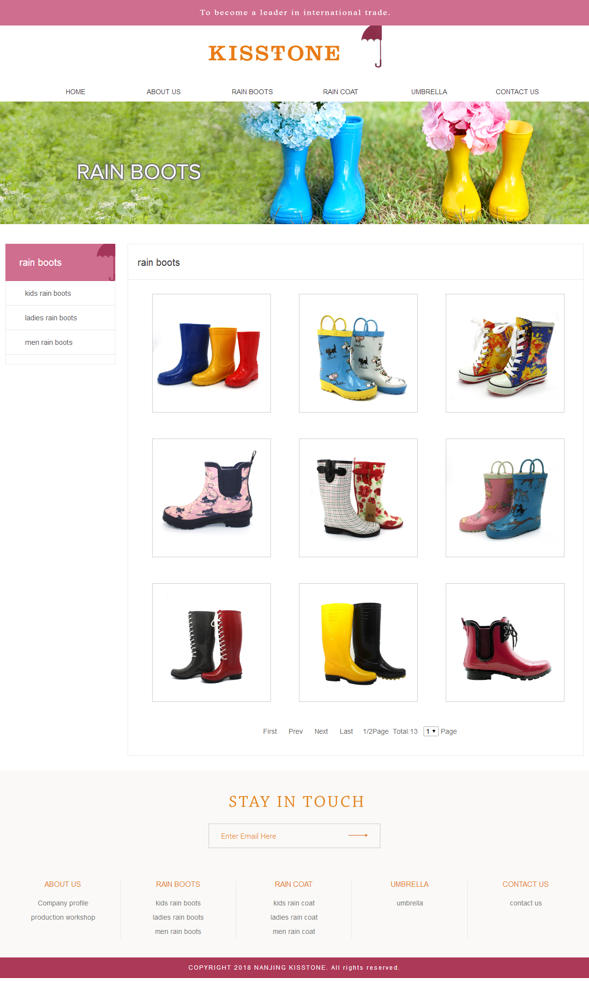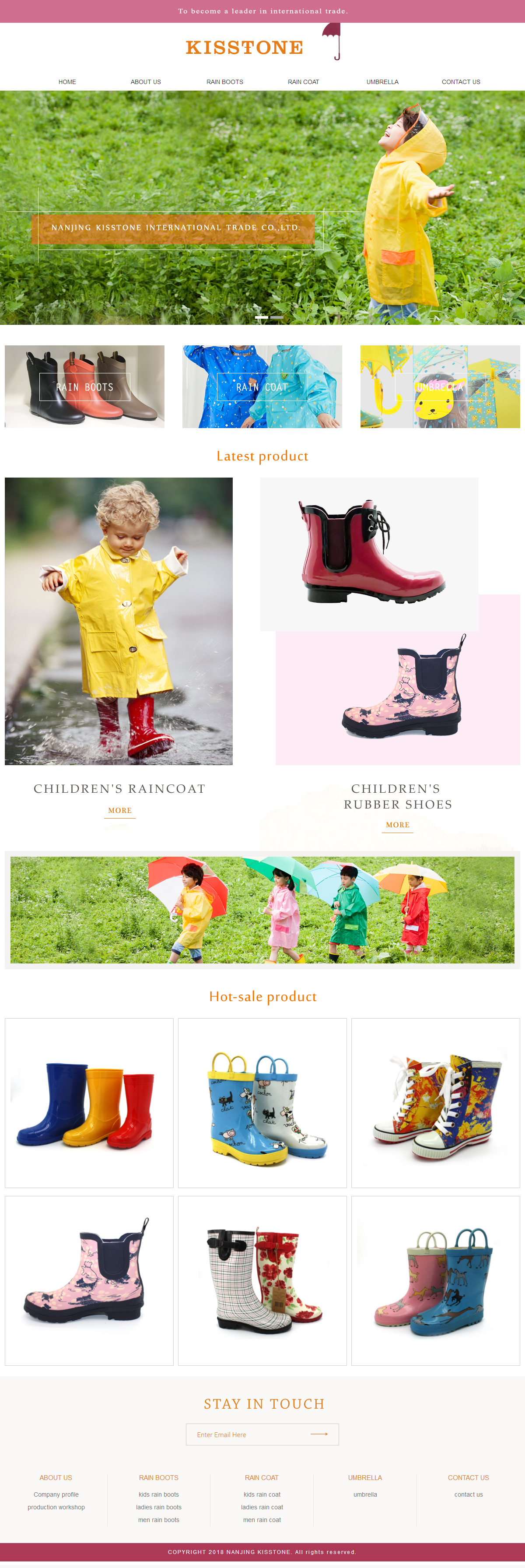 該公司是專業(yè)從事雨靴、雨衣、雨傘的外貿(mào)公司,首先這類網(wǎng)站要采用國外的風格展現(xiàn),因為具體的客戶來源是國外用戶,而外貿(mào)用戶的網(wǎng)站為典型的就是簡潔大氣,尤其是首頁,不需要繁瑣的羅列,這一點跟國內(nèi)網(wǎng)站完全不一樣,國內(nèi)更看重于網(wǎng)站的豐滿,有內(nèi)容,內(nèi)頁里面的東西在首頁上都要有簡單的顯示,然后點擊更多,會看到內(nèi)頁里面的東西,外國人希望看到的東西直接羅列首頁,然后就算完成,至于更多的內(nèi)容,可以放到內(nèi)頁顯示。