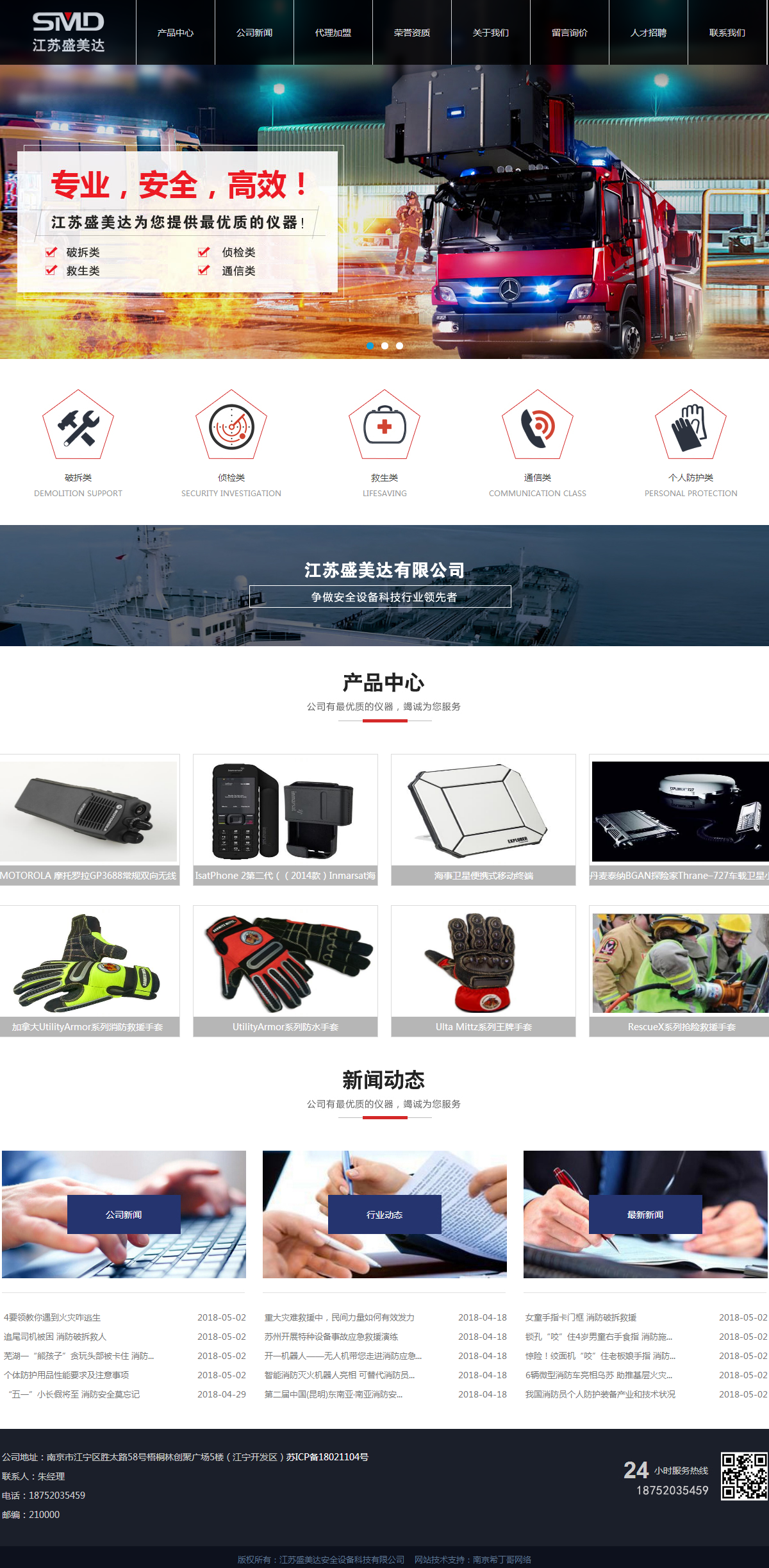 從切換的banner中,我們采用了浮層,大大的紅字奪人眼目,語言高效有力,簡單直接,所謂專業(yè)、安全、高效!顯示了公司的企業(yè)文化的氛圍,下面一行是點(diǎn)明企業(yè)是做什么的,有什么樣的想法,以及有哪些優(yōu)勢,我們很巧妙的引用了四個復(fù)選標(biāo)記,直接點(diǎn)題,四點(diǎn)直接展示要做的內(nèi)容,即破拆類、偵檢類、救生類、通信類,而上面的文字直接顯示出語言的霸氣:江蘇盛美達(dá)為您提供優(yōu)質(zhì)的儀器,言外之意,我們只做高端,低端的劣質(zhì)的,我們不做不提供。