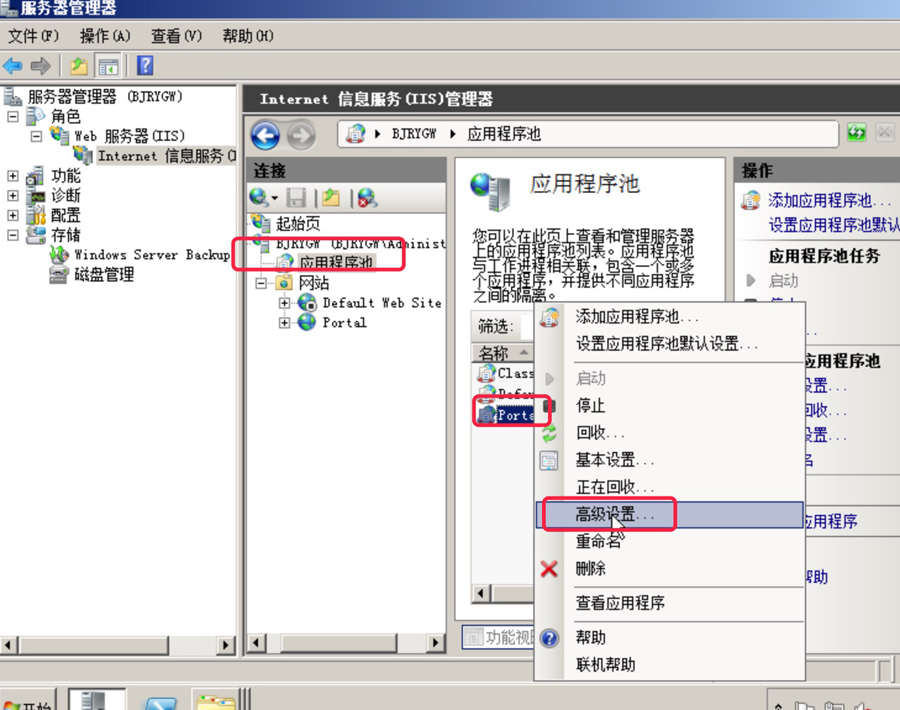 在這之后,右邊會出現(xiàn)列表,右擊Portal,選擇高級設(shè)置,操作的演示附圖如下: