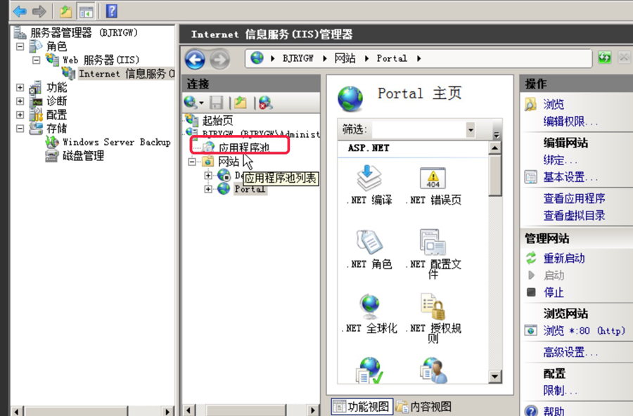 首先,右擊桌面上的“計算機”圖標(biāo),選擇“管理”,然后展開服務(wù)與應(yīng)用程序,點擊Internet信息服務(wù)管理器,再點擊右邊的應(yīng)用程序池,具體見下面的附圖: